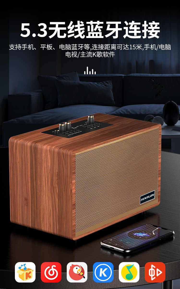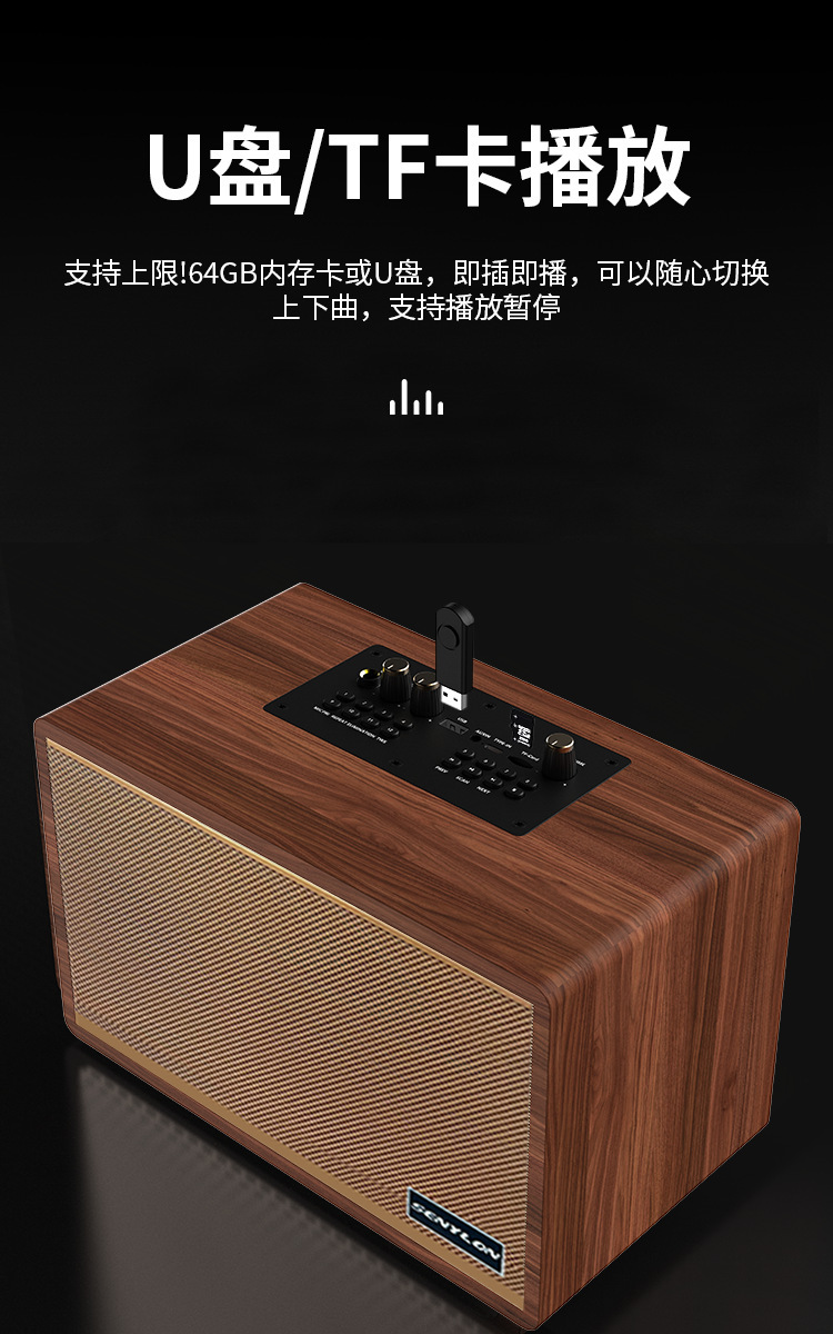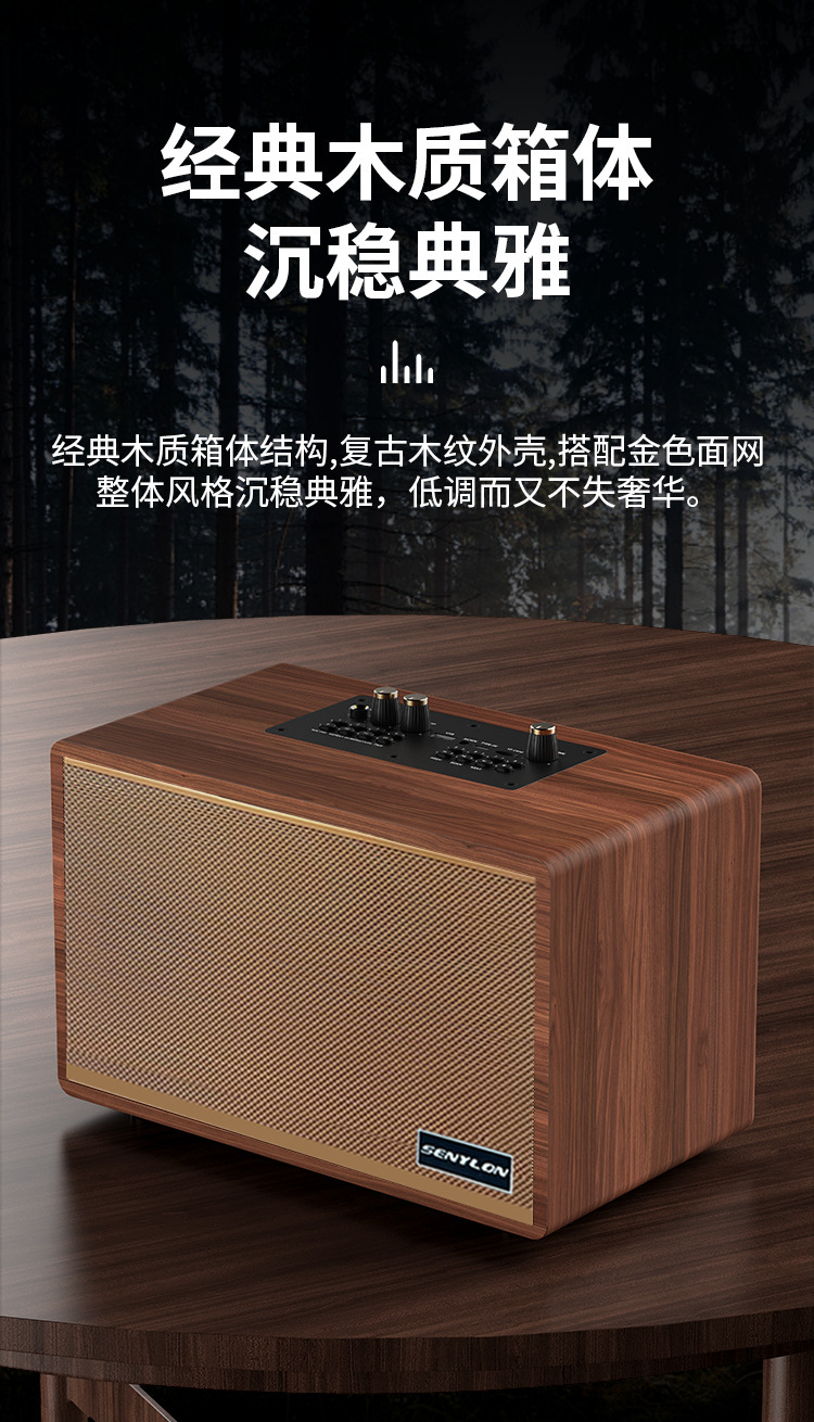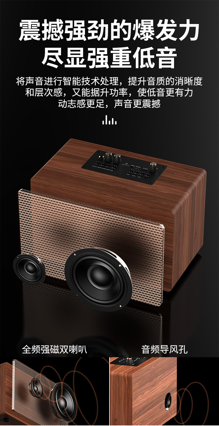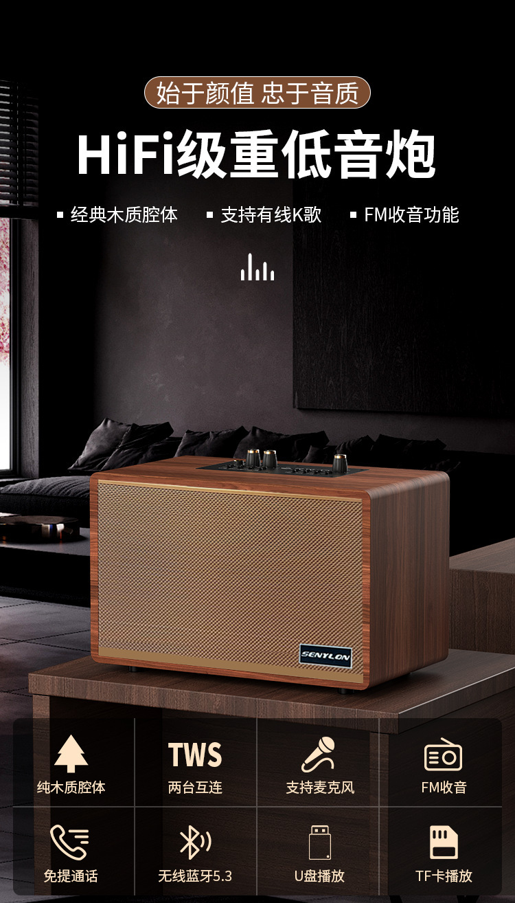 爆款復古木質藍牙音箱創意禮品插卡家用低音砲一體機K歌音響