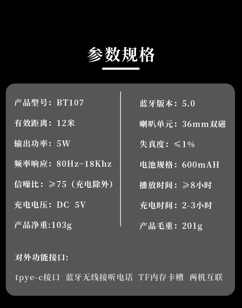 顔色 | BT--107黑色款【TYPE-C數據線+說明書】 |