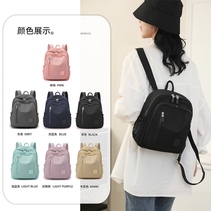 簡約休閒女後背包大容量旅行通勤可攜式包大容量尼龍布百搭女士雙肩包
