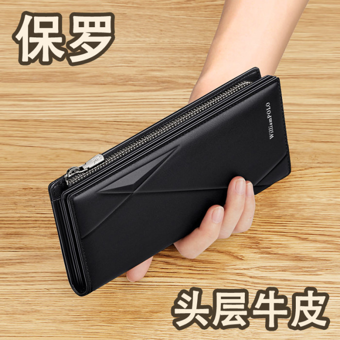 英皇保羅錢包男士長款錢包男真皮手包男士頭層牛皮錢夾卡包男