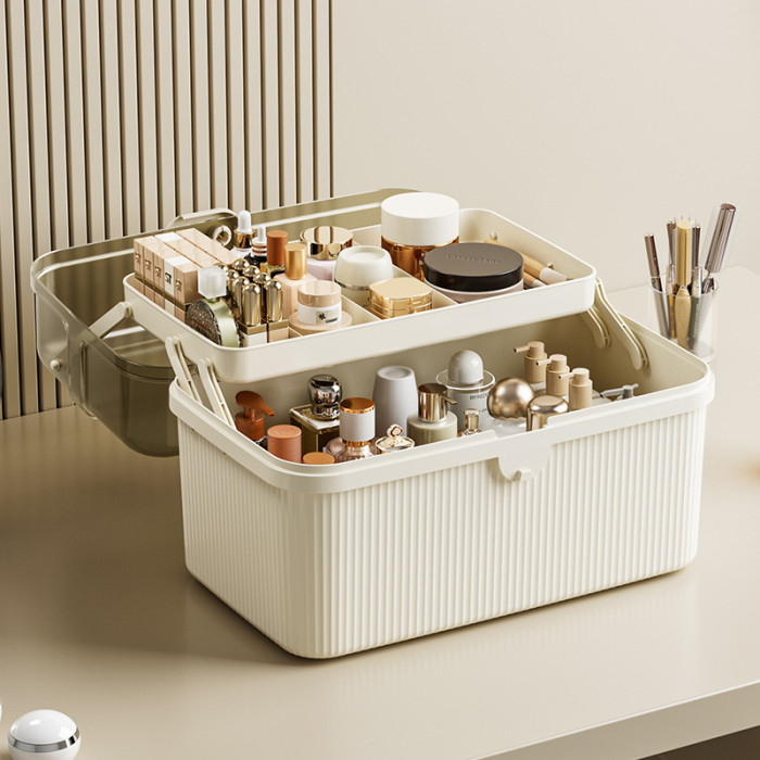 化妝品收納盒化妝箱多層折曡收納箱家用飾品整理盒口紅眼影收納盒