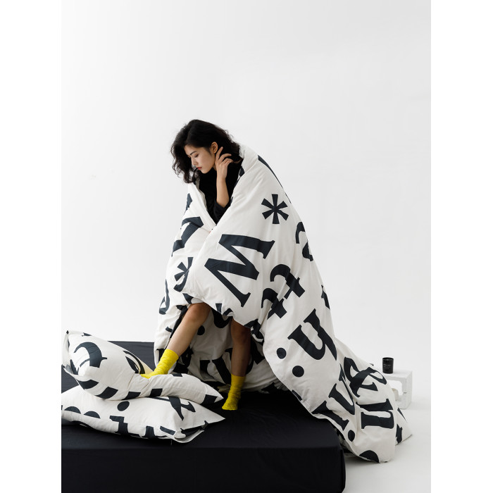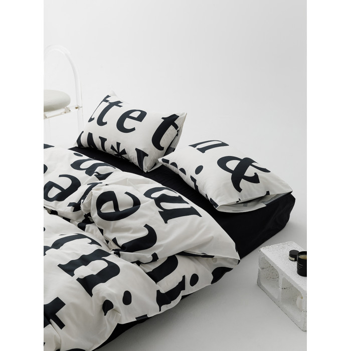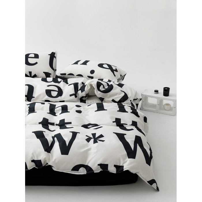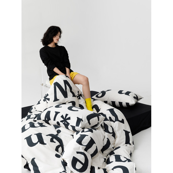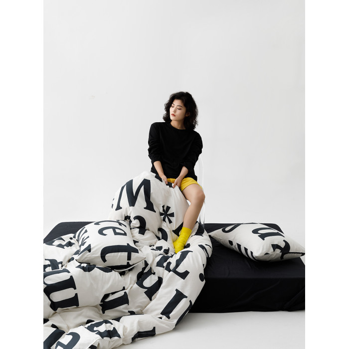 小衆設計師純棉全棉被套單件簡約風黑白宿舍雙人被罩床上三四件套