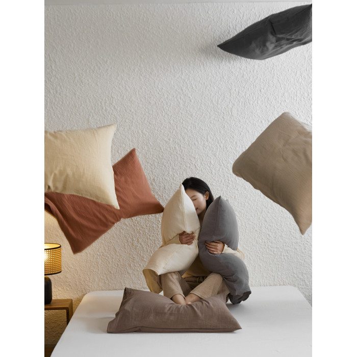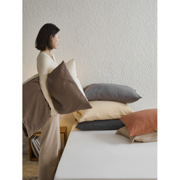 北歐純色雙層紗A類全棉枕套48x74cm一對裝 純棉2衹紗布透氣枕芯套