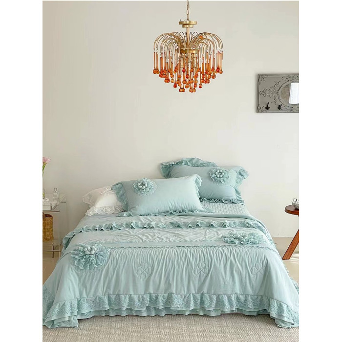 新款韓國100棉被罩單件全棉蕾絲床蓋四件套2米x2米3被套純棉春秋