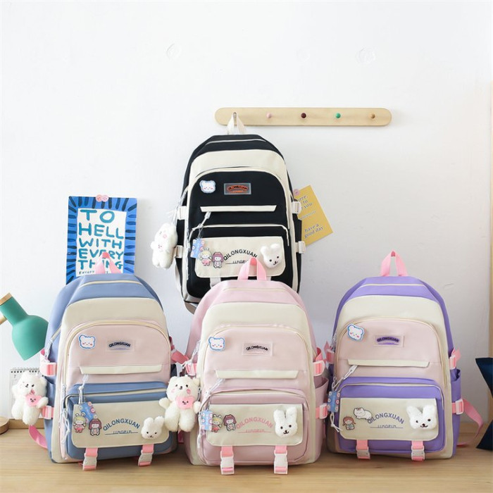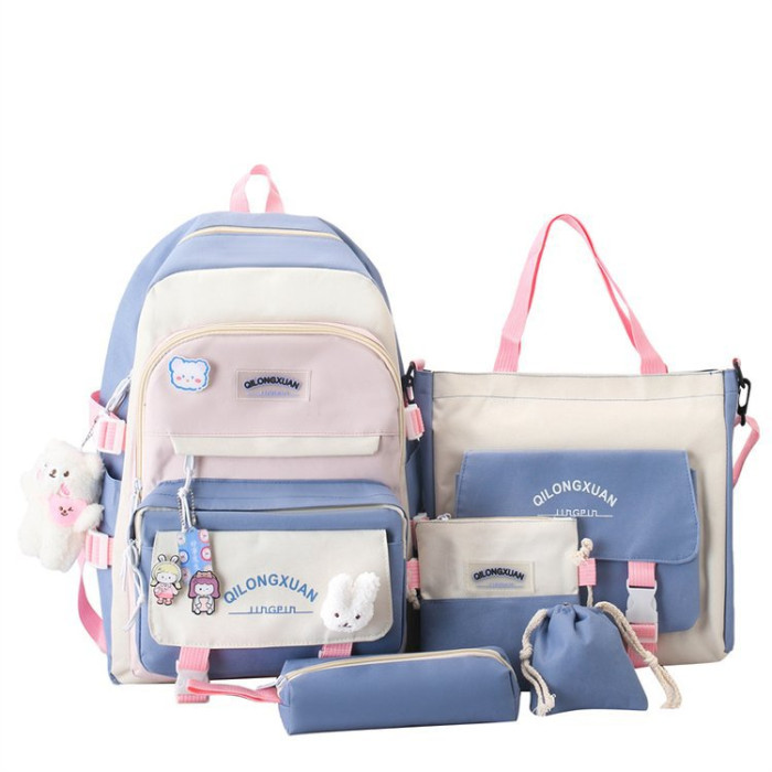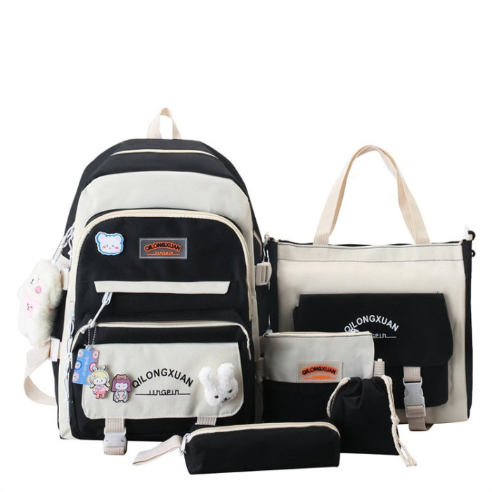 書包 女韓版高中ins風百搭時尚原宿校園簡約森系學生雙肩包五件套