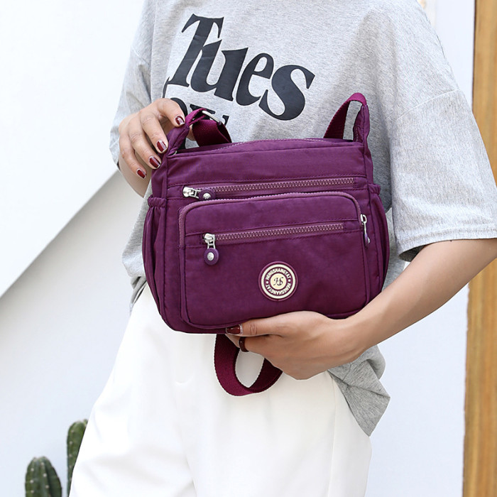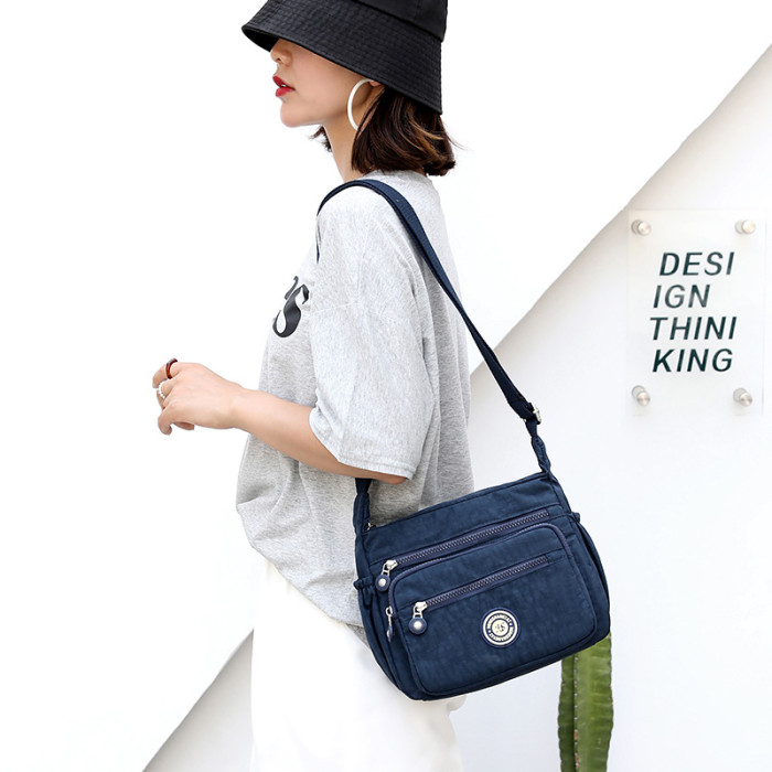 秋季新款尼龍布包單肩包斜背多口袋女包時尚出行休閒橫款托特包