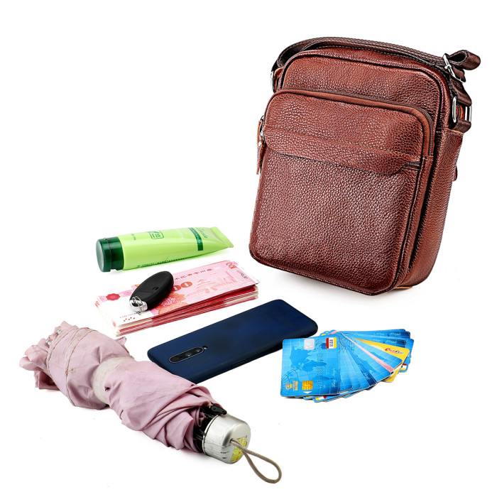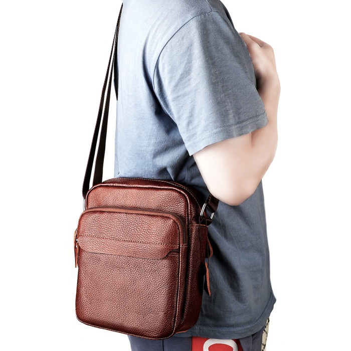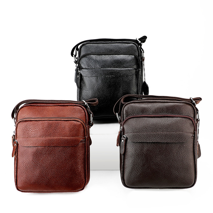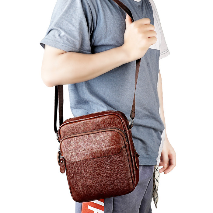 男士頭層牛皮單肩包日常簡約潮牌後背包輕便男生斜後背包大容量menbag