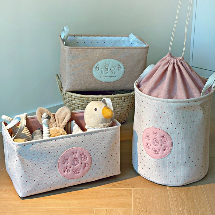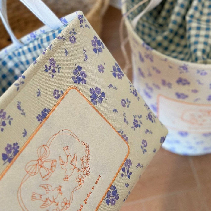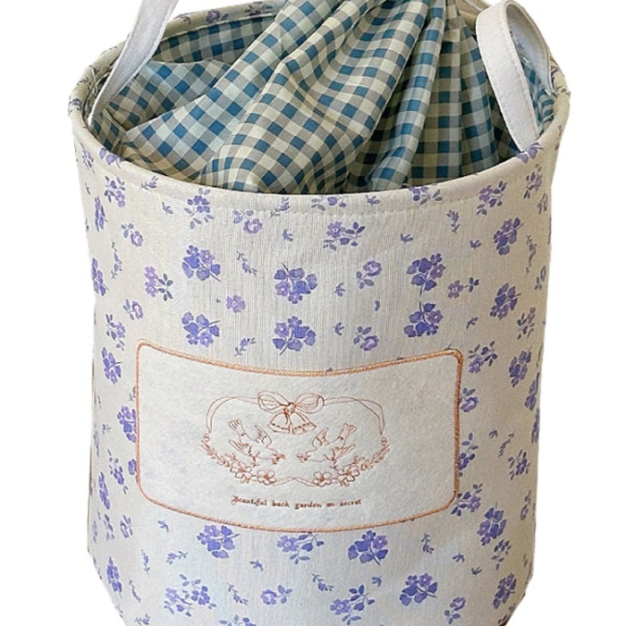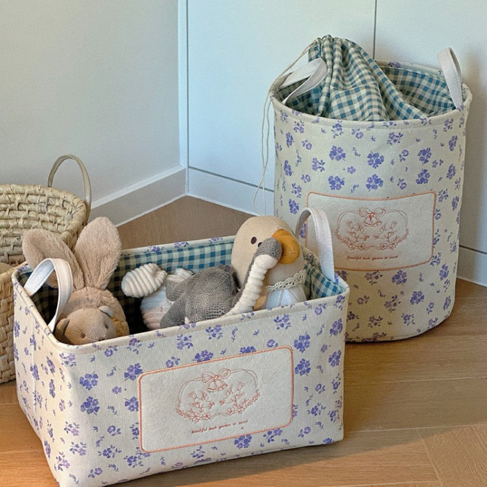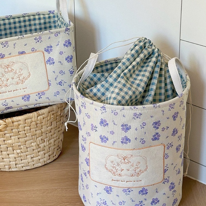 布藝刺綉收納箱車用零食雜物收納筐衣服束口防塵髒衣桶陽台髒衣桶