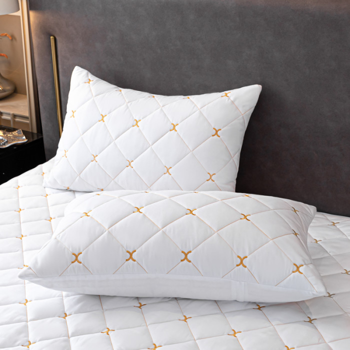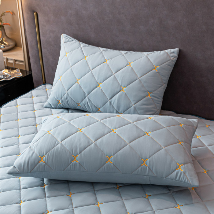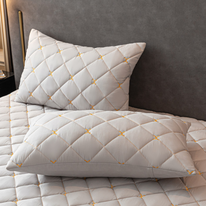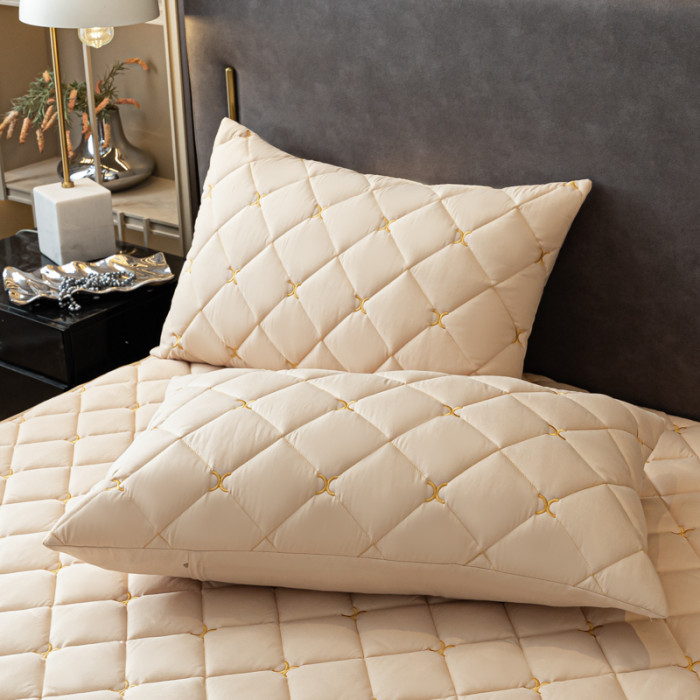 床笠同款刺綉純棉夾棉枕套抗菌一對裝親膚透氣家用五星級48x74cm