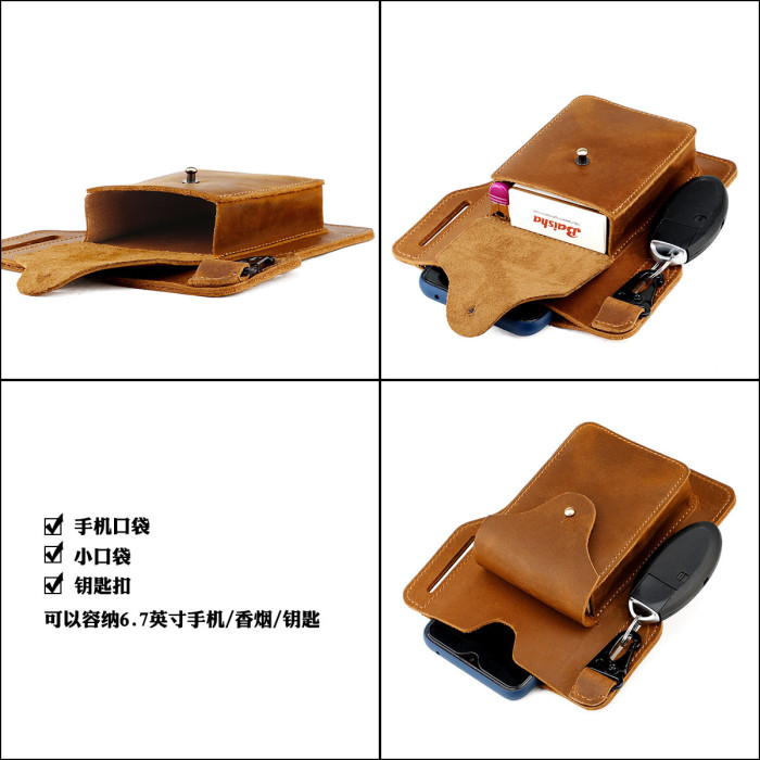 新款瘋馬皮雙手機包腰掛戶外運動工地運動復古男士腰包