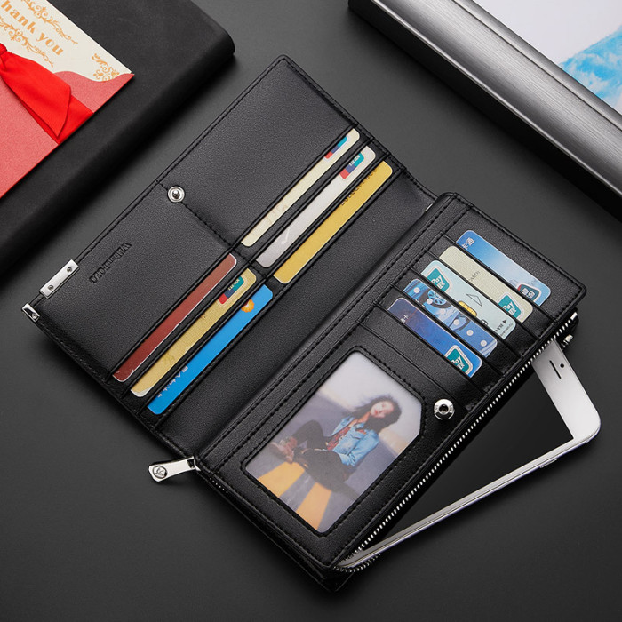 英皇保羅男士錢包長款真皮錢包男多卡位錢包男款簡約牛皮錢包