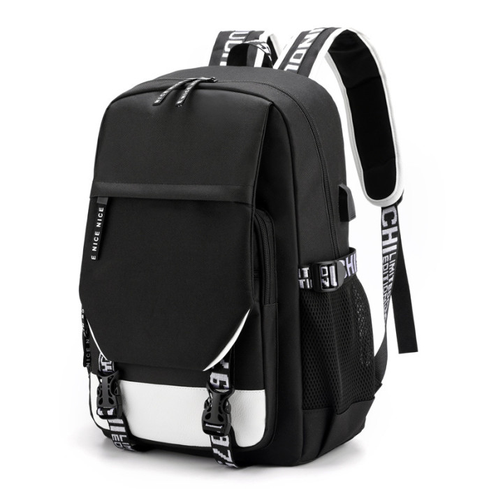 2021新款牛津布雙肩包USB充電後背包戶外旅行學生書包
