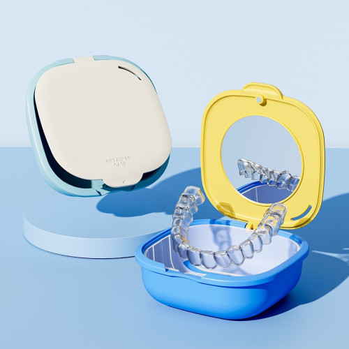 煥彩牙套盒藍黃磁吸開合+自帶鏡子 +瀝水層