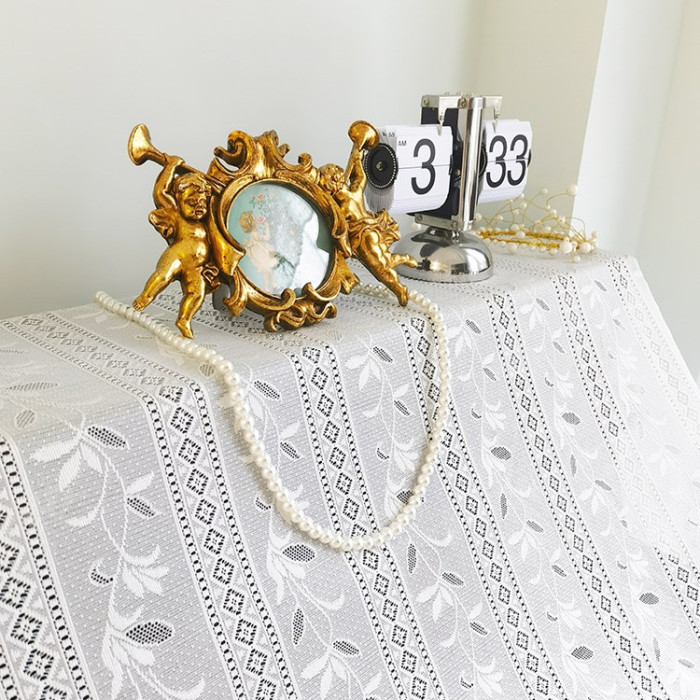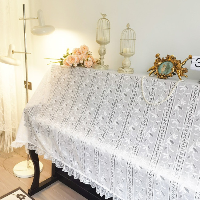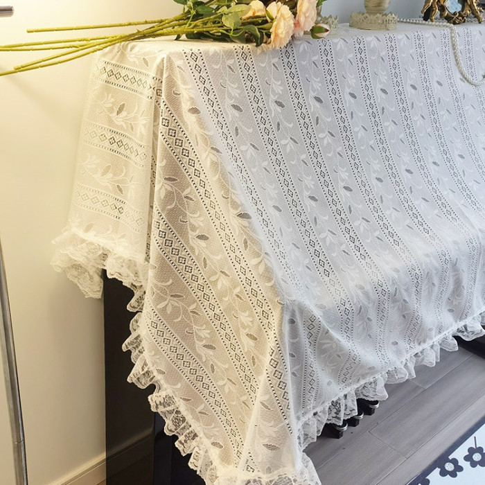 白蘭花紗+四周褶皺花邊 鋼琴蓋巾
