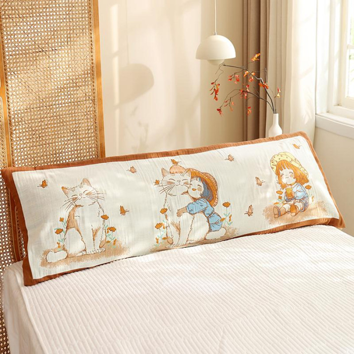 純棉四層紗布雙人枕套1.5m成人全棉厚長款枕頭套新款高檔長枕芯套
