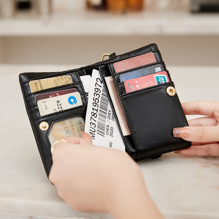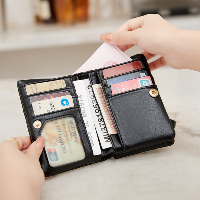 女包韓版清新零錢包2024夏季新款小巧百搭大容量短款三折錢包