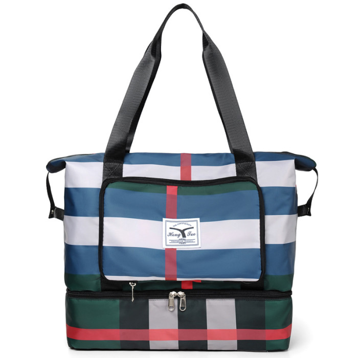 格子可折曡旅行包時尚單肩大容量健身包出差短途行李袋手提收納袋