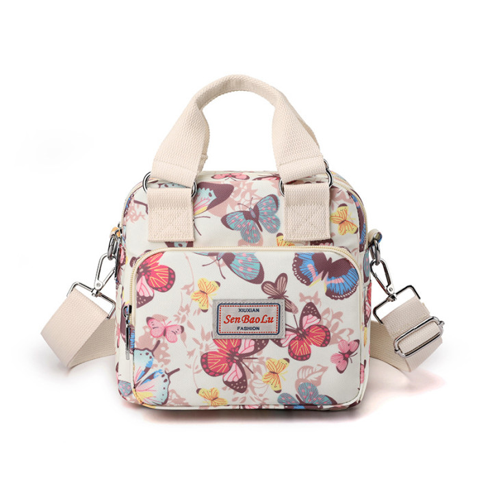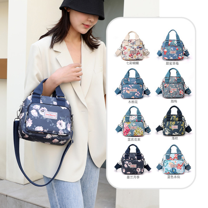 休閒手提包2023新款潮流印花逛街輕便尼龍布包防潑水單肩斜後背包