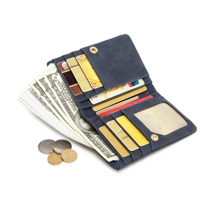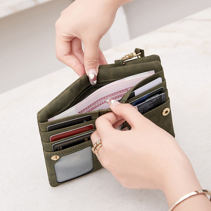 韓版大容量簡約小巧女士錢包多功能復古卡包百搭時尚短款零錢包包