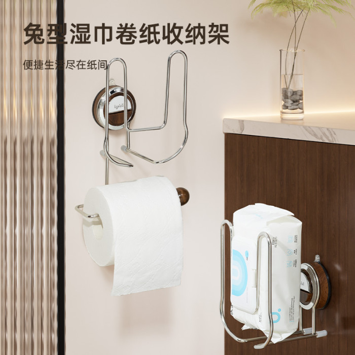 吸盤卷紙架溼紙巾架衛生間壁掛式厠紙掛架厠所紙巾盒衛生紙置物架