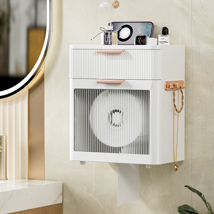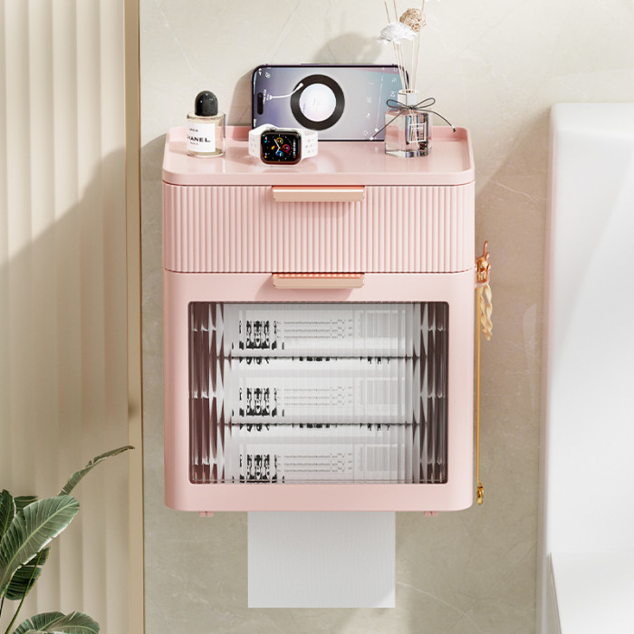 衛生間紙巾盒洗臉巾收納盒免打孔防水厠所卷紙盒壁掛衛生紙置物架