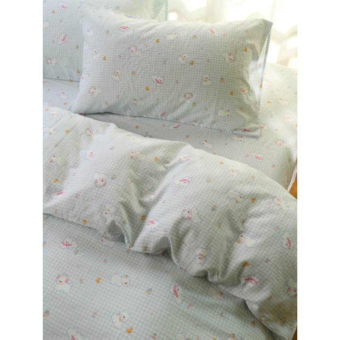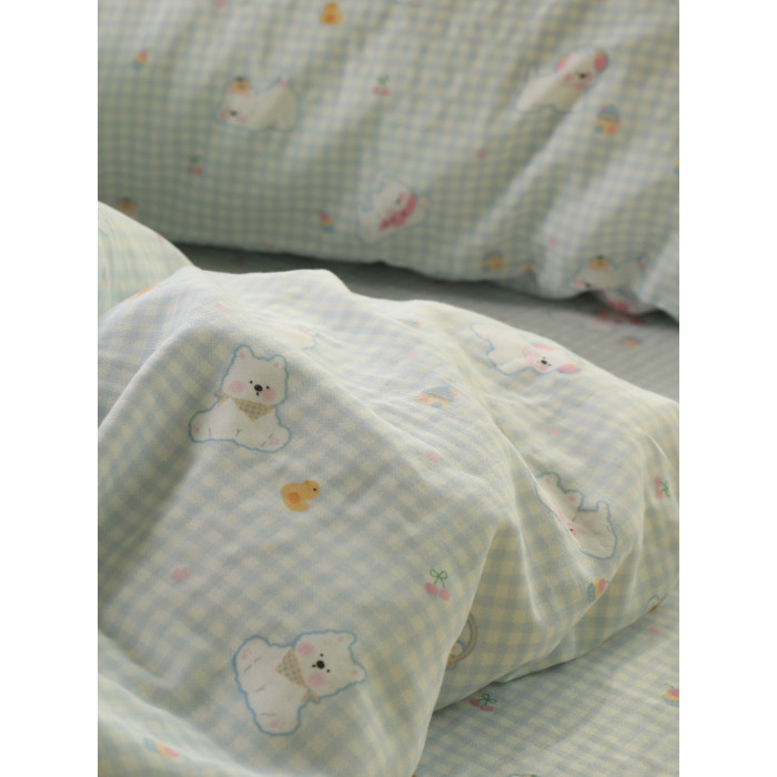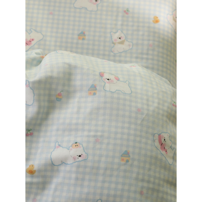 開心小狗雙層紗布藍色幼兒園兒童被套150x200全棉純棉被罩四件套