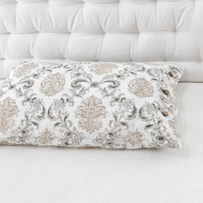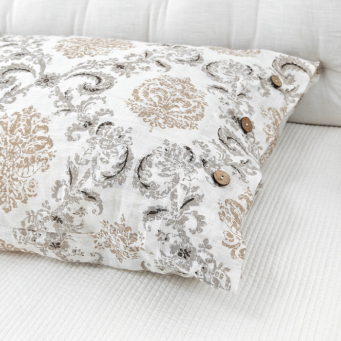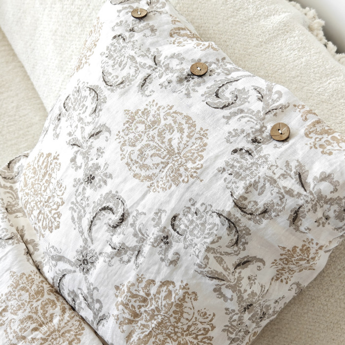 新品法國進口亞麻14支紗水洗純亞麻印花單人枕套