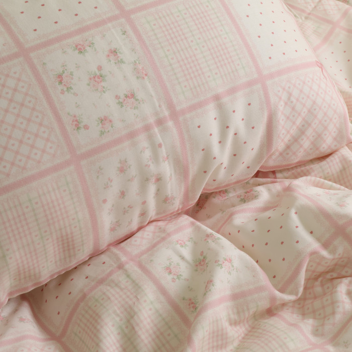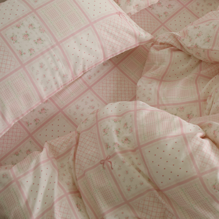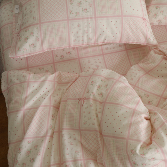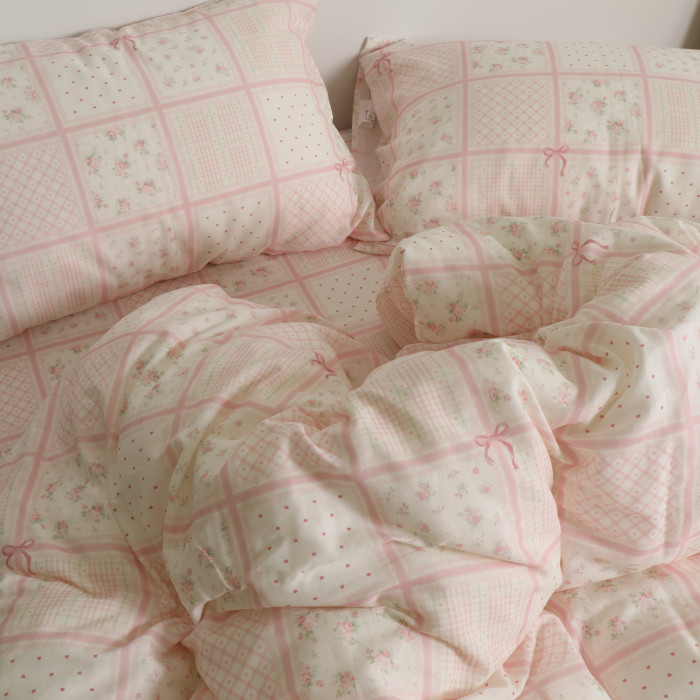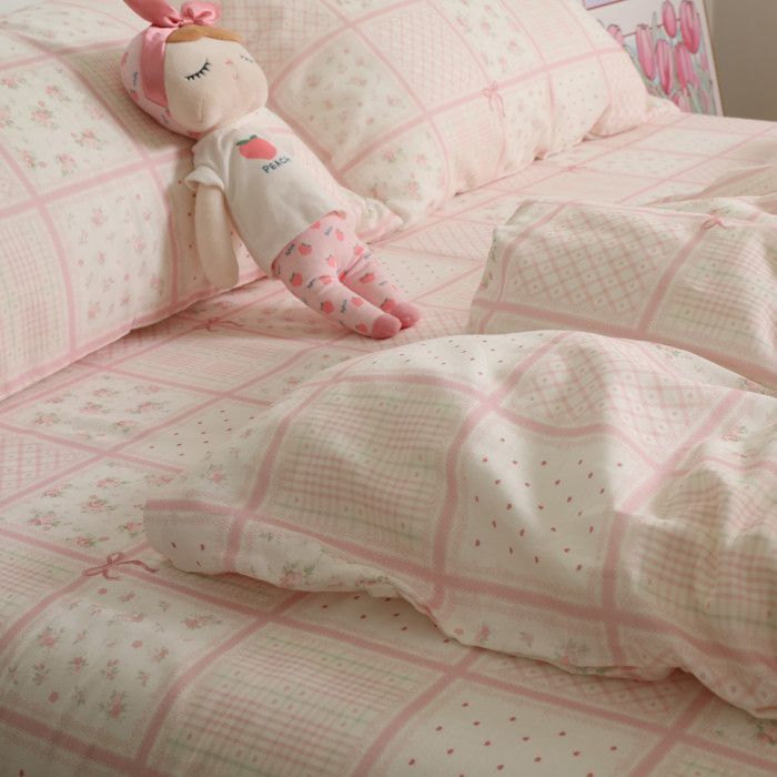 粉色夢田少女生小清新雙層紗被套單件純棉全棉被罩單人床上四件套