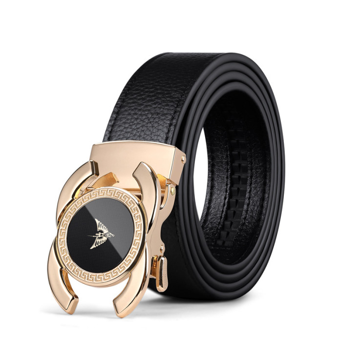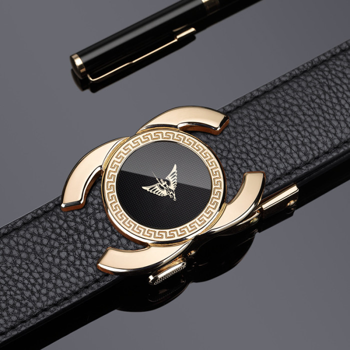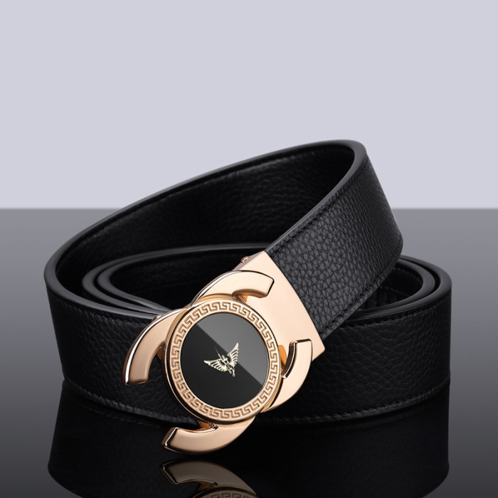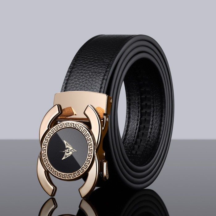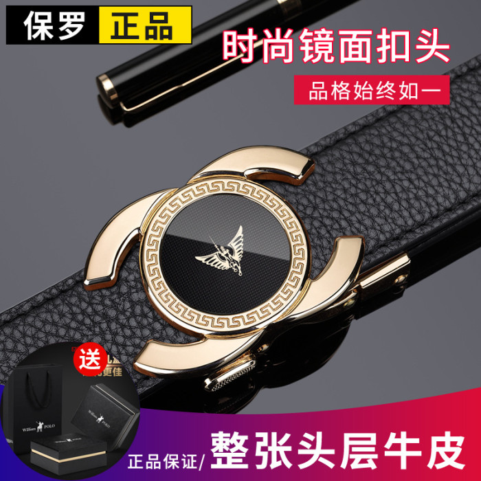 英皇保羅皮帶男士真皮自動釦頭層牛皮腰帶男時尚鏡面皮帶男士