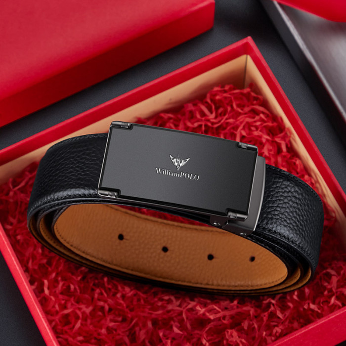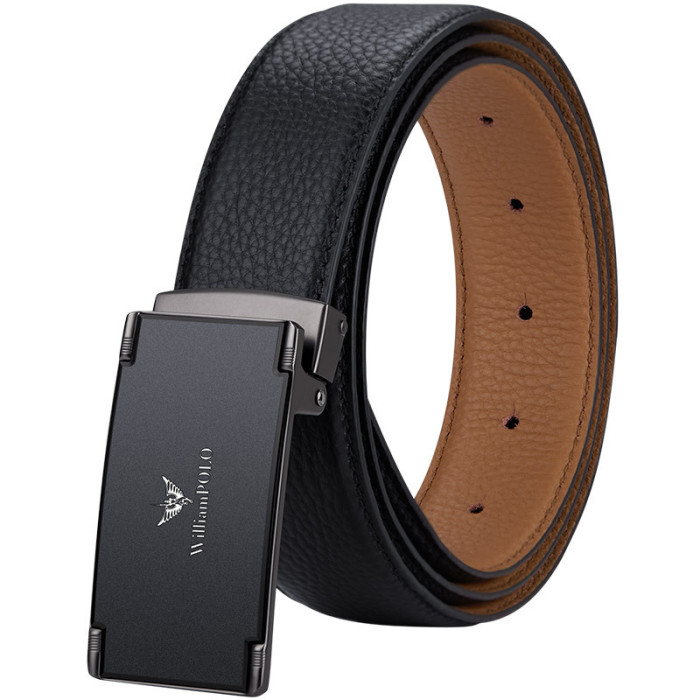 英皇保羅皮帶男士真皮平滑釦板釦打孔腰帶男士商務皮帶男士高級感