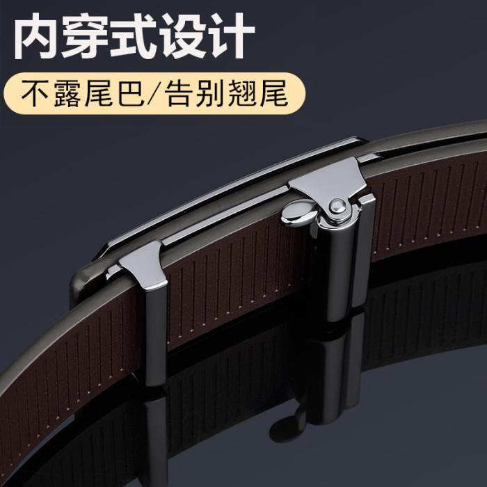 英皇保羅皮帶男士真皮內穿自動釦純牛皮腰帶男士時尚皮帶男士