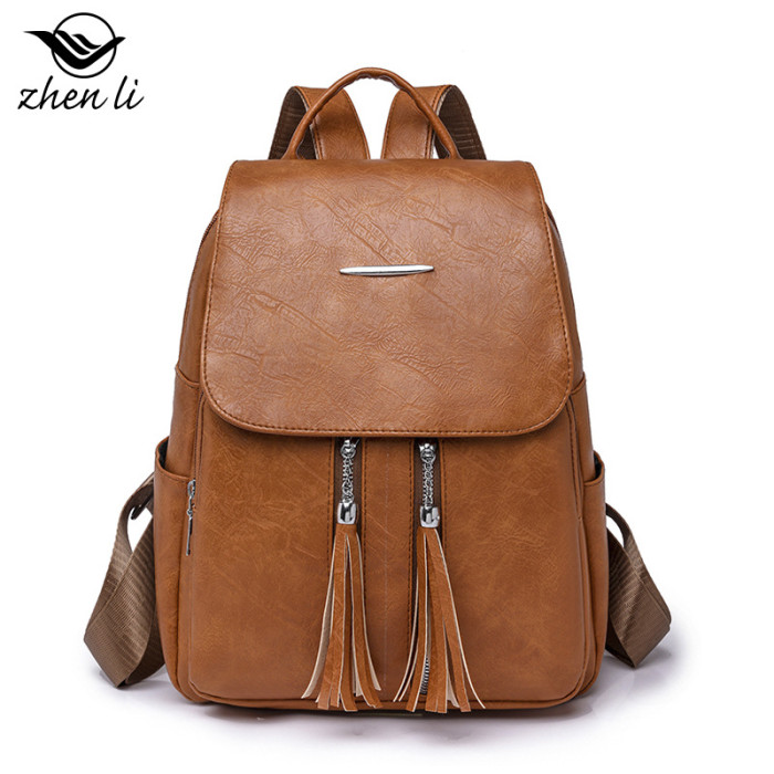 zhenli 2023年秋季歐美復古PU雙肩後背包女士雙肩包bags女生包包