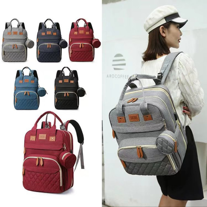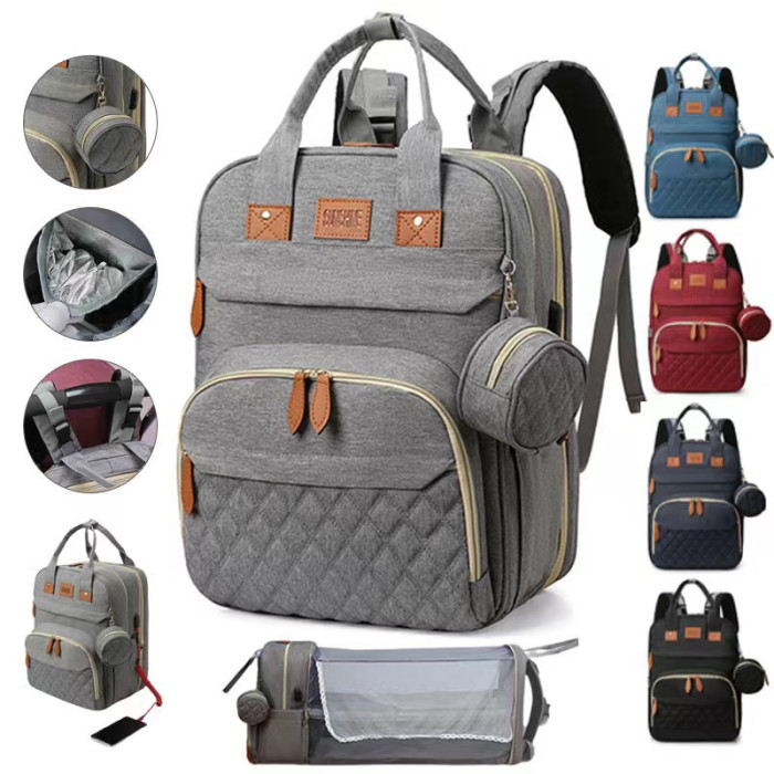 新款折曡媽咪包 嬰兒床usb遮陽多功能雙肩大容量母嬰旅行後背包