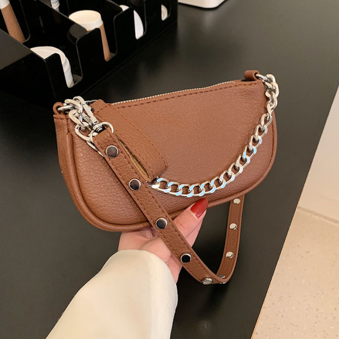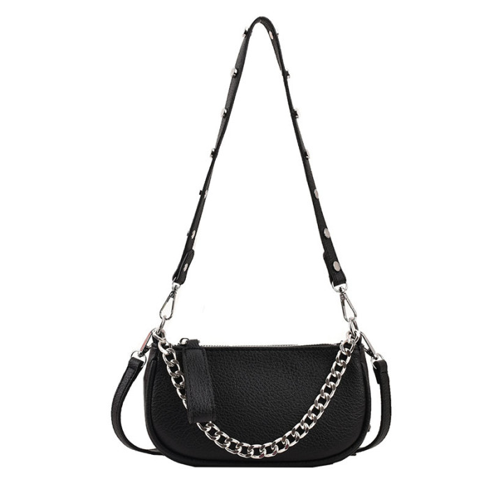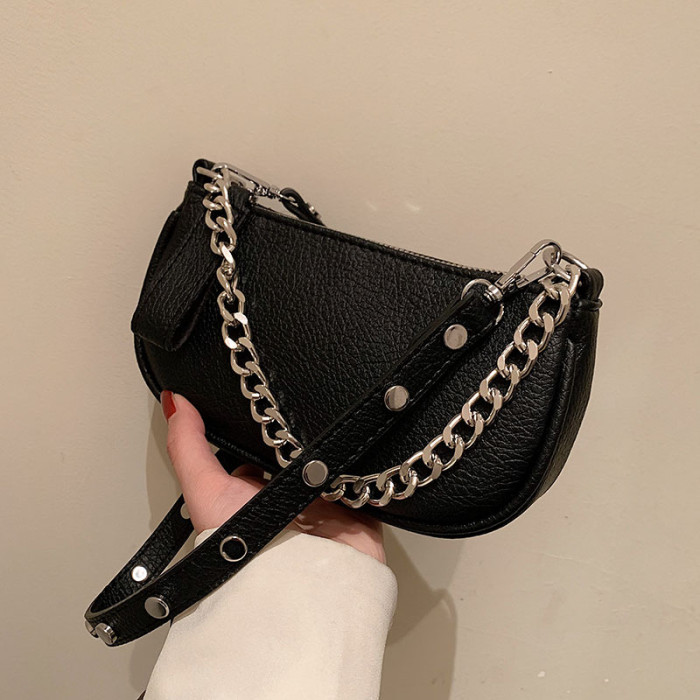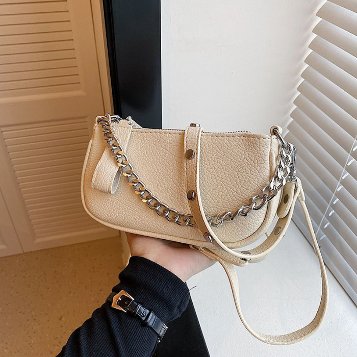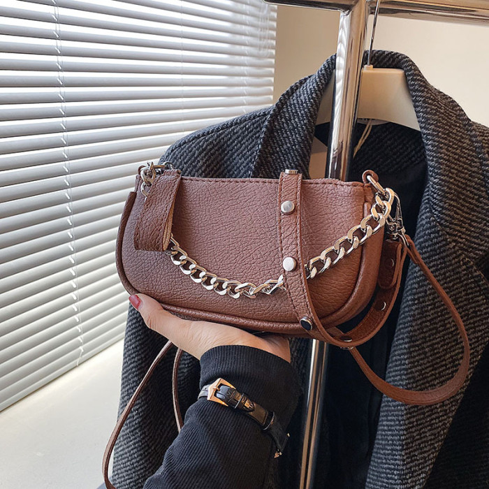 荔枝紋設計鏈條小包包女韓版簡約小方包2023新款夏季小衆潮斜後背包