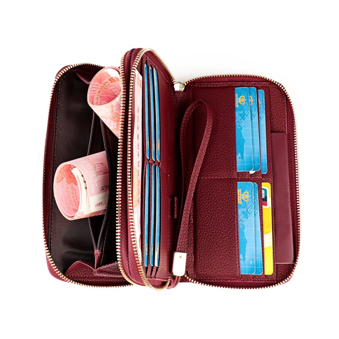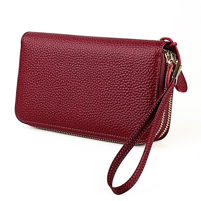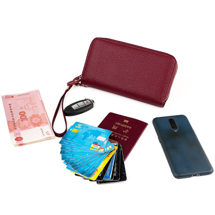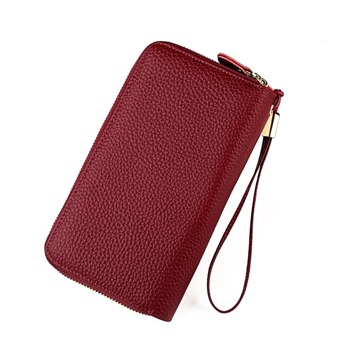 新品RFID防盜刷雙拉鍊錢包 女式多功能真皮手拿包卡包零錢包