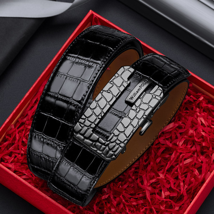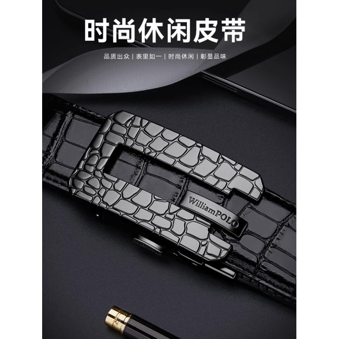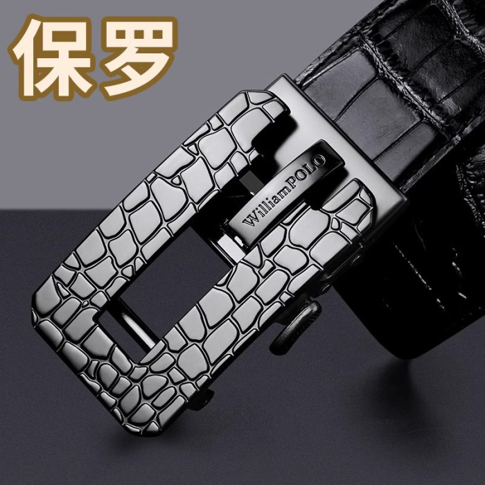 英皇保羅皮帶男士真皮純牛皮自動釦男士腰帶年輕人高檔鱷魚紋褲帶