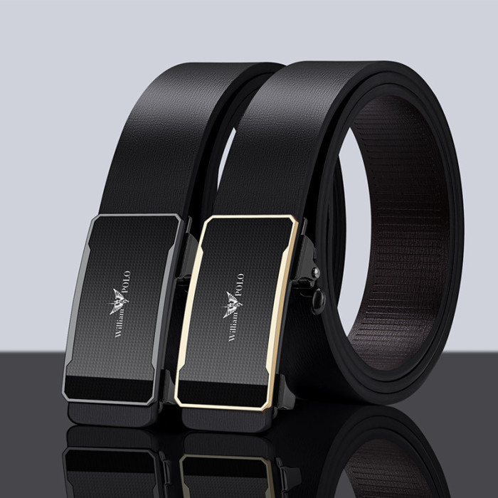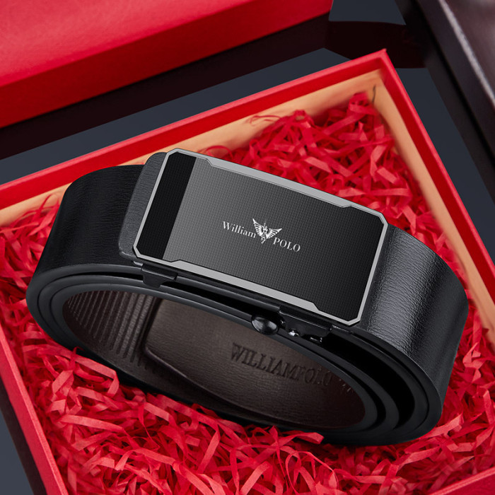 保羅男士皮帶真皮自動釦無牙內穿純牛皮商務休閒腰帶褲帶男款