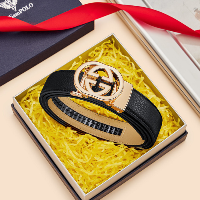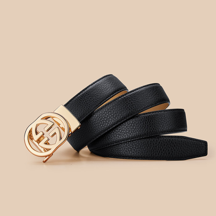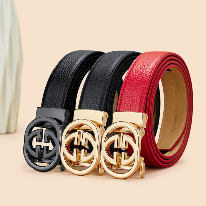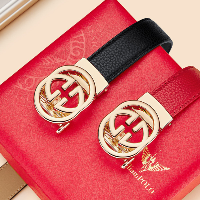 英皇保羅女士皮帶真皮自動釦腰帶女牛皮時尚休閒紅色小香褲帶女款