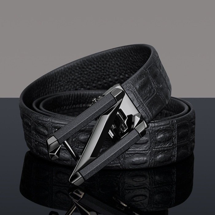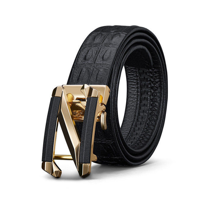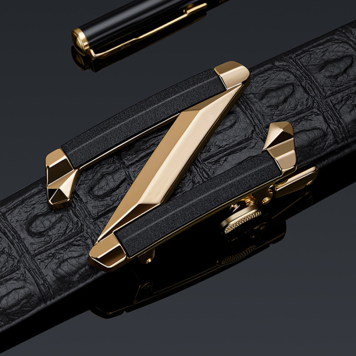 英皇保羅皮帶男士高級感新款鱷魚紋真皮字母簡約牛皮腰帶男款