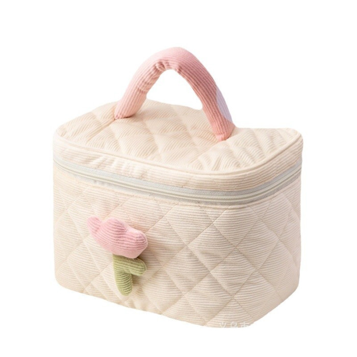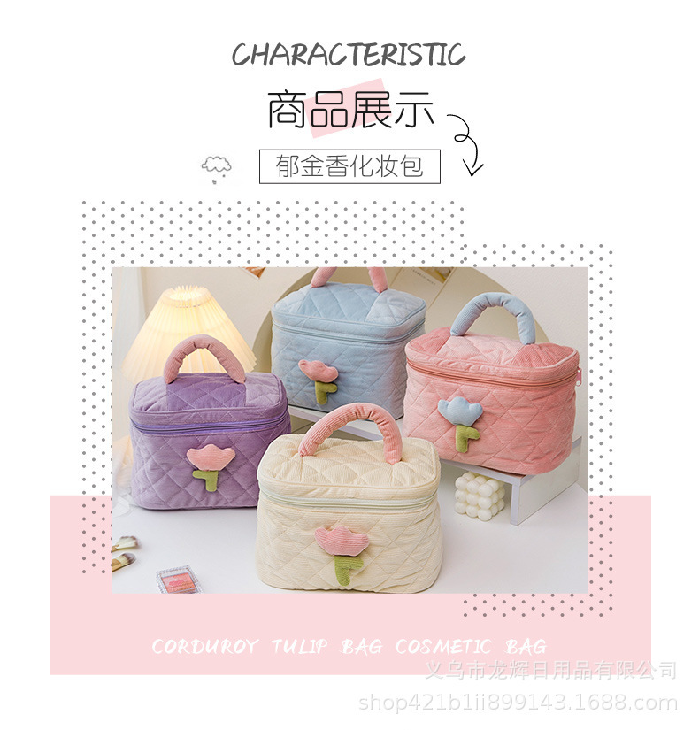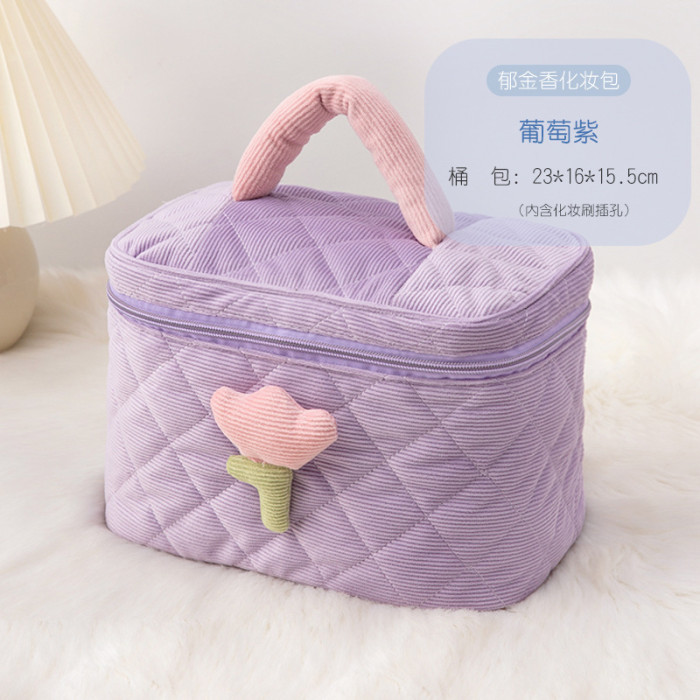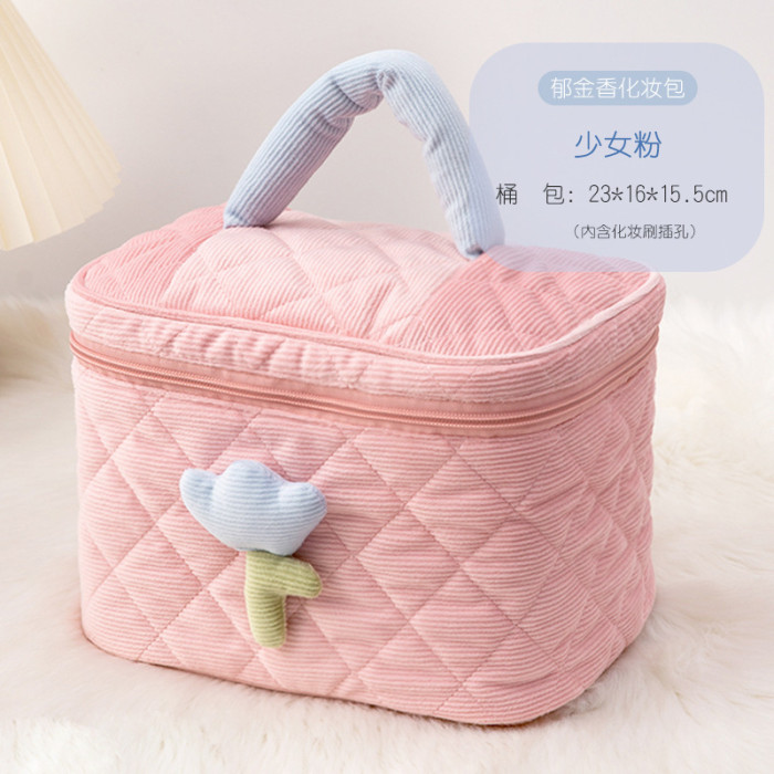 超大燈芯絨高顔值化妝包可攜式大容量高級感收納包可愛化妝品收納袋