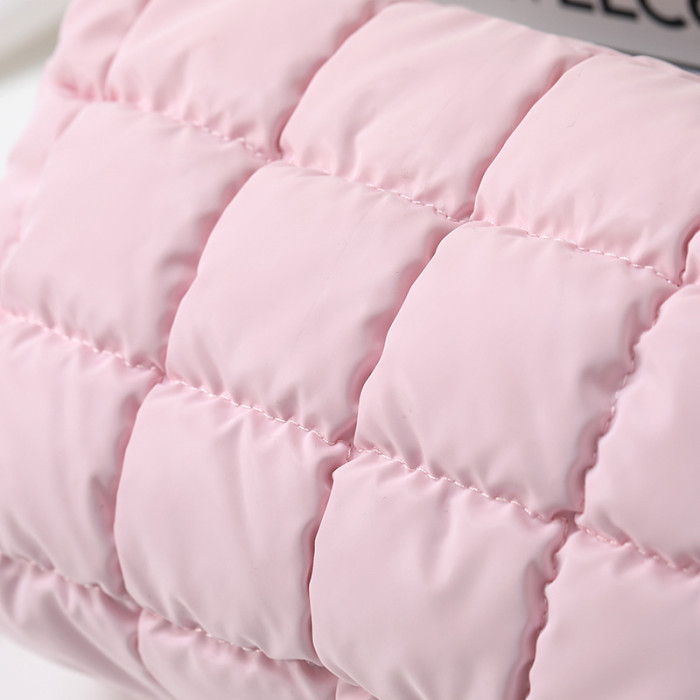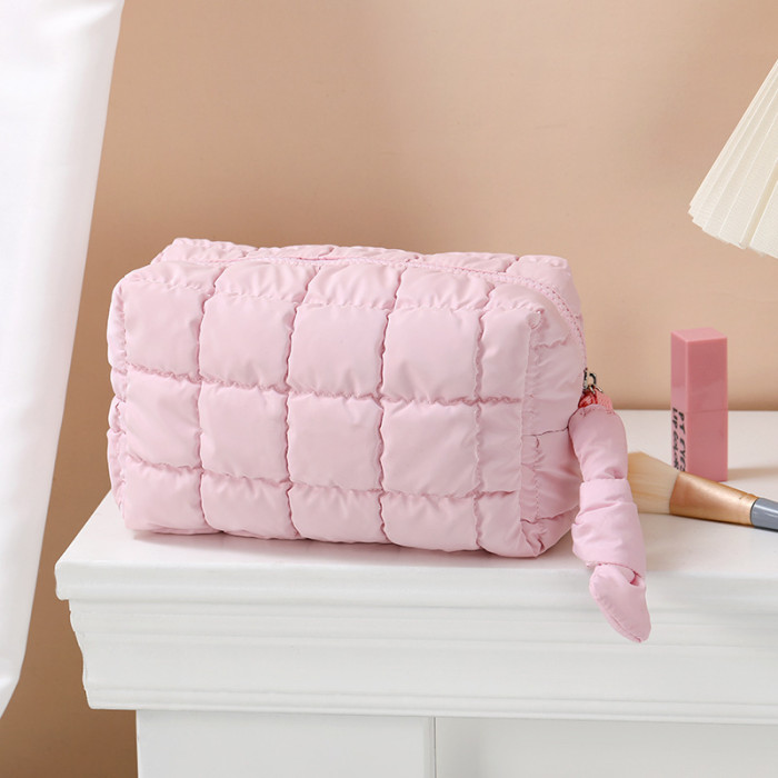 簡約ins風羽絨化妝包女小可攜式旅行手提大容量高級感填充棉收納包