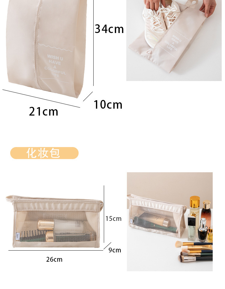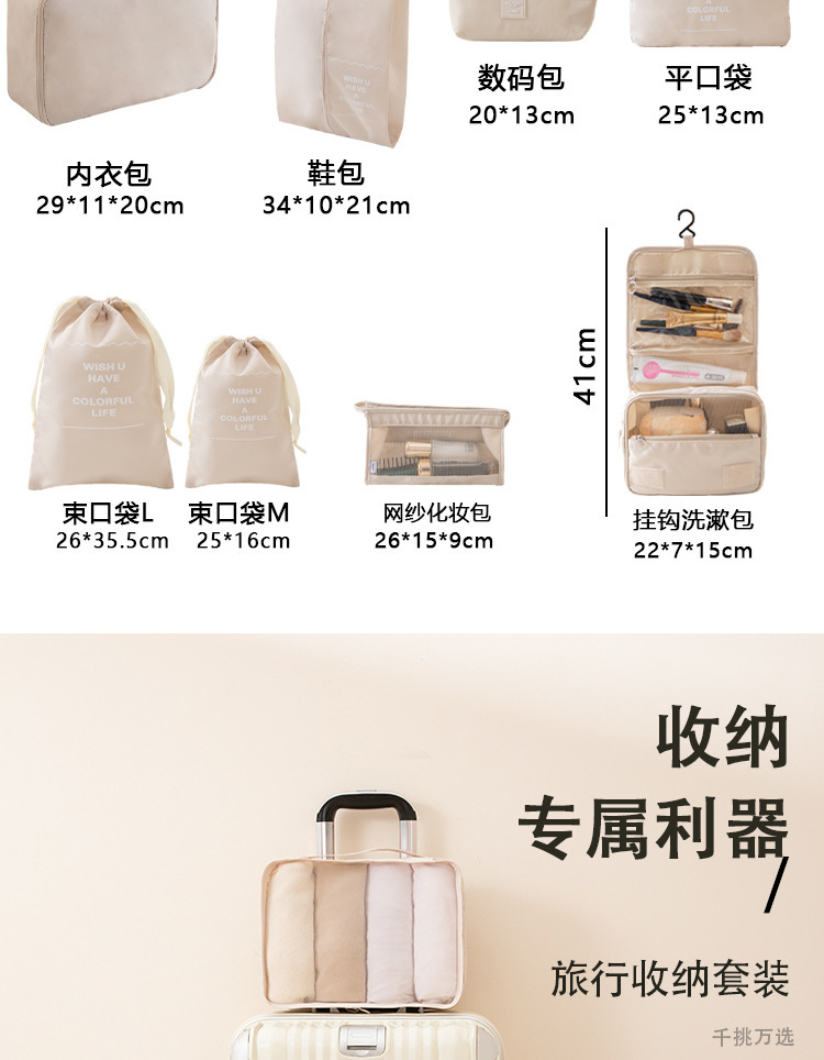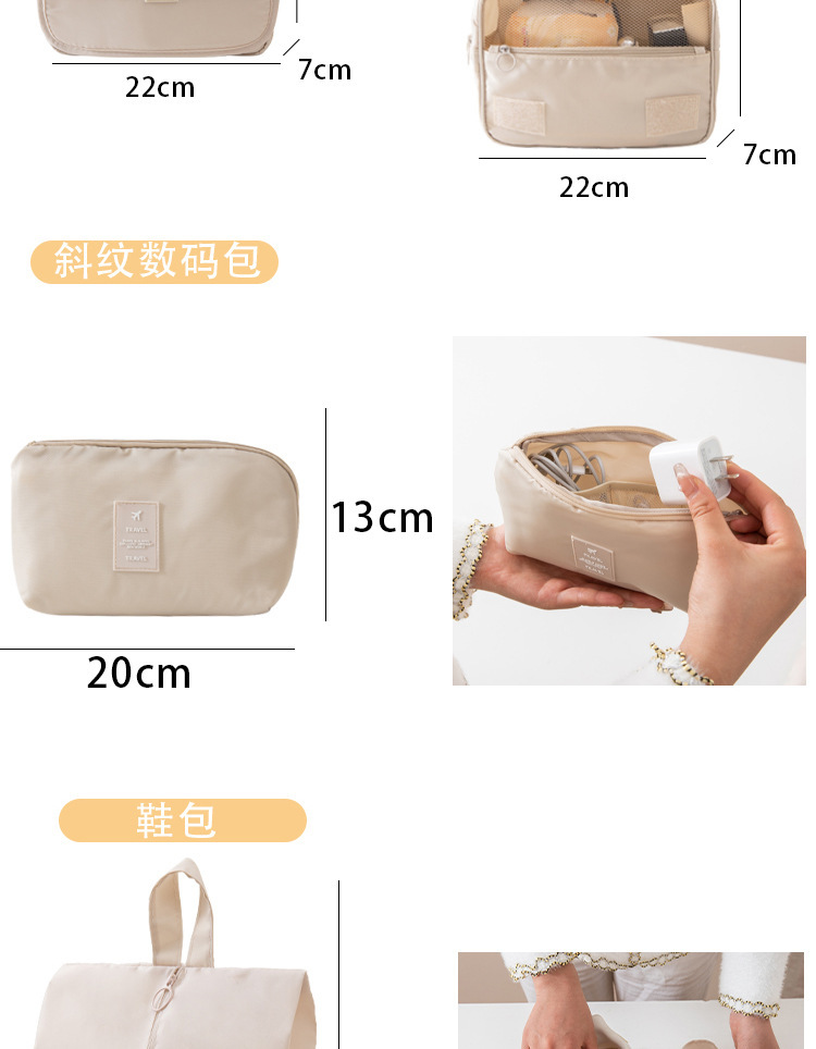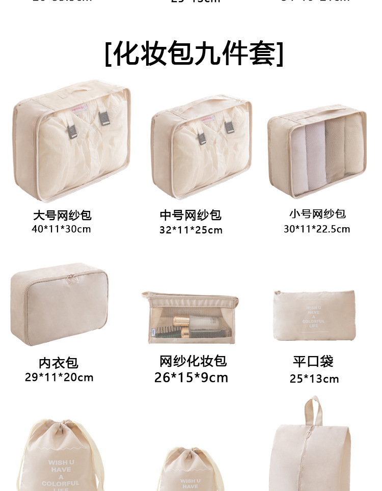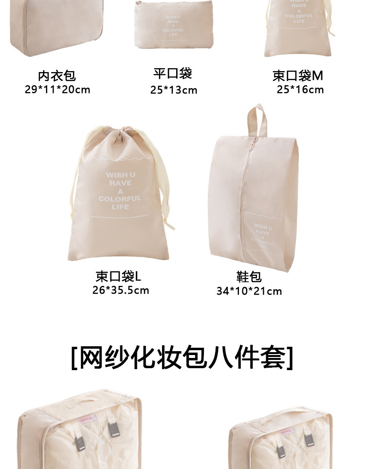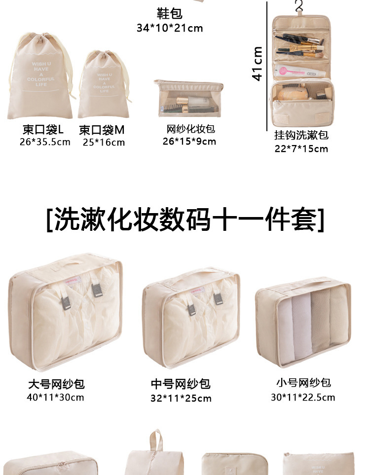掛鉤數碼化妝束口包11件套米色