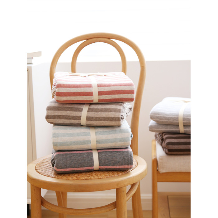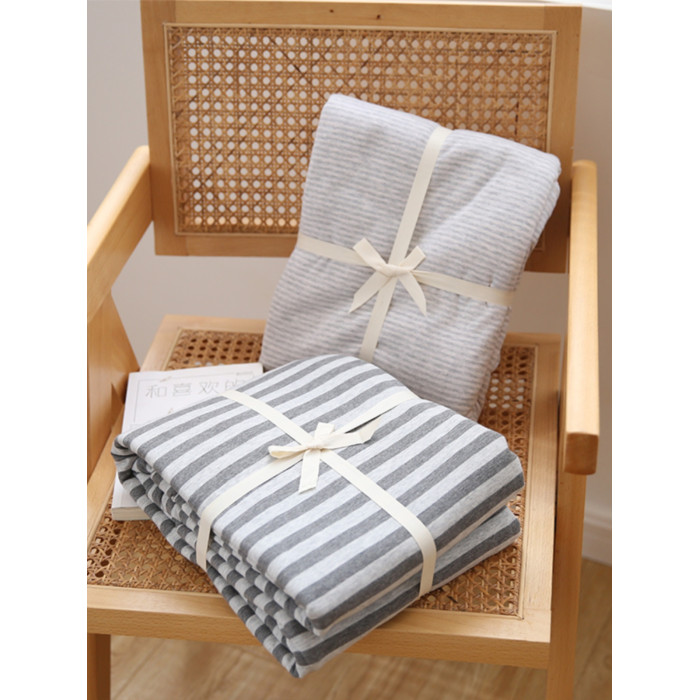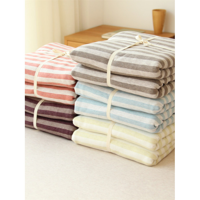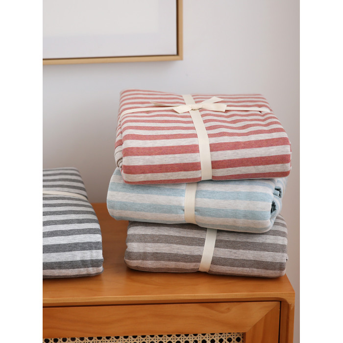 在耳邊日式簡約風格針織棉條紋被套全棉新疆棉天竺棉被罩床上用品