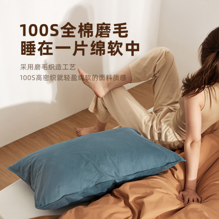 100支長絨棉加厚磨毛枕套單個純色枕頭套純棉枕芯內膽套一對裝拍2