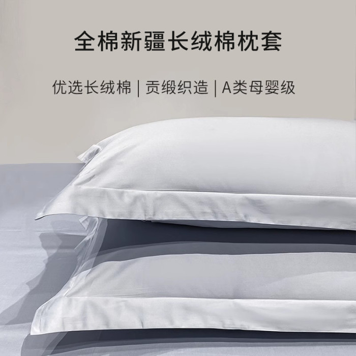 全棉長絨棉貢緞枕套高級純色單人枕芯套純棉48*74一對拍2