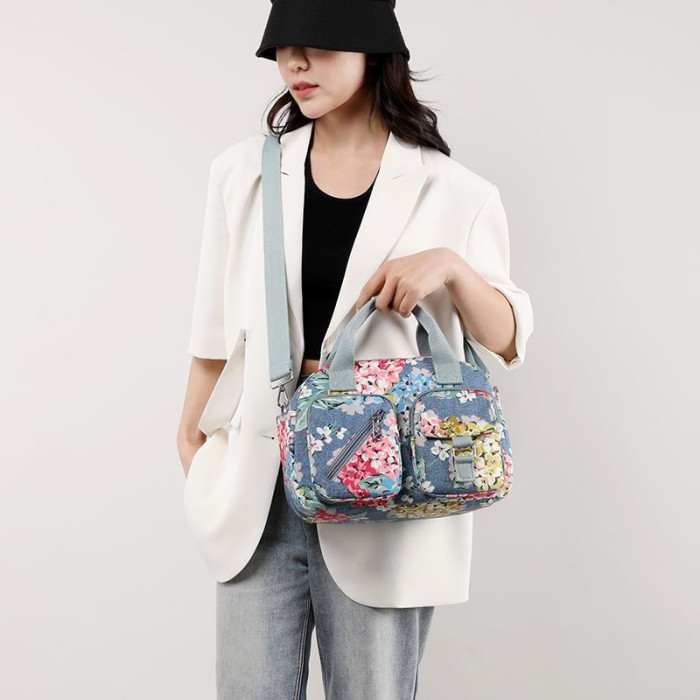 風潮印花女包2023秋季新款尼龍包大容量單肩手提斜後背包女士包