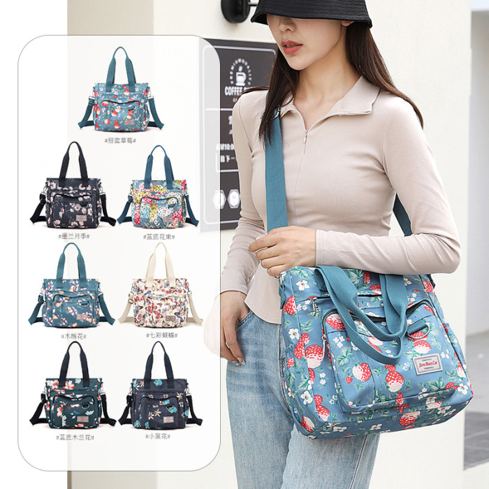 時尚印花女包尼龍布防潑水單肩包大容量斜後背包 可攜式帆布手提包