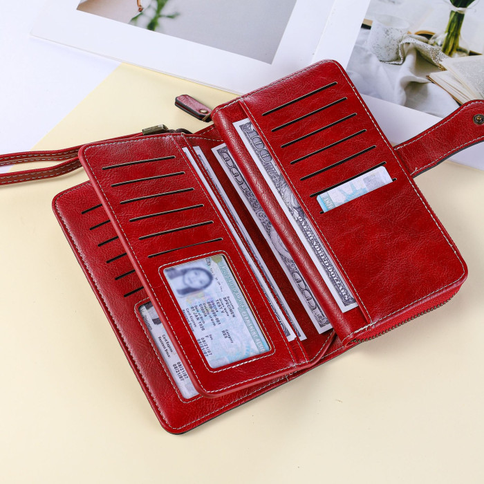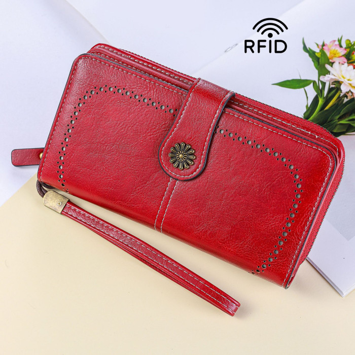 復古多功能防盜刷RFID拉鍊按釦大容量長款女士錢包錢夾手拿包
