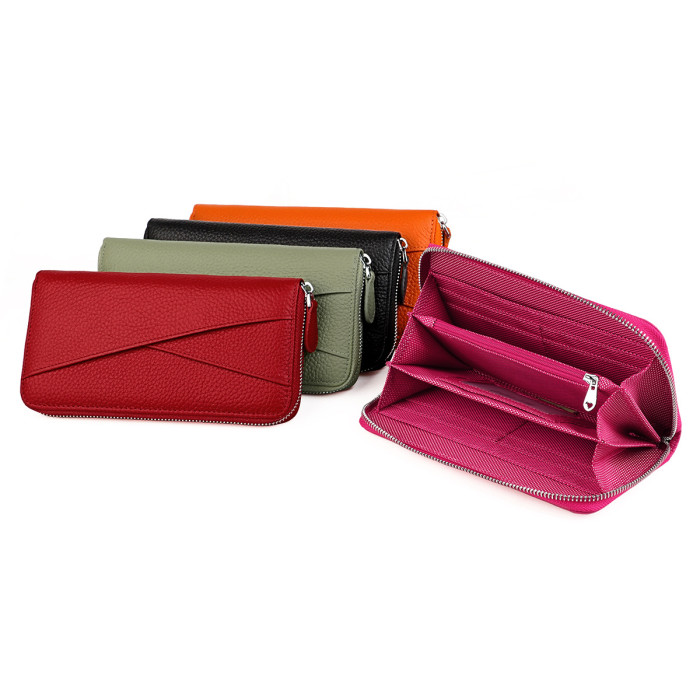 2024年新款日式長款錢包防盜刷RFID卡包美金包女式手拿包真皮卡套