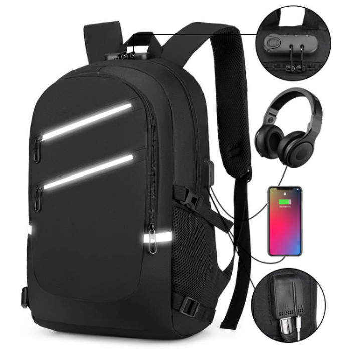 雙肩包都市簡約商務筆記型電腦後背包大容量密碼鎖旅行收納上課書包